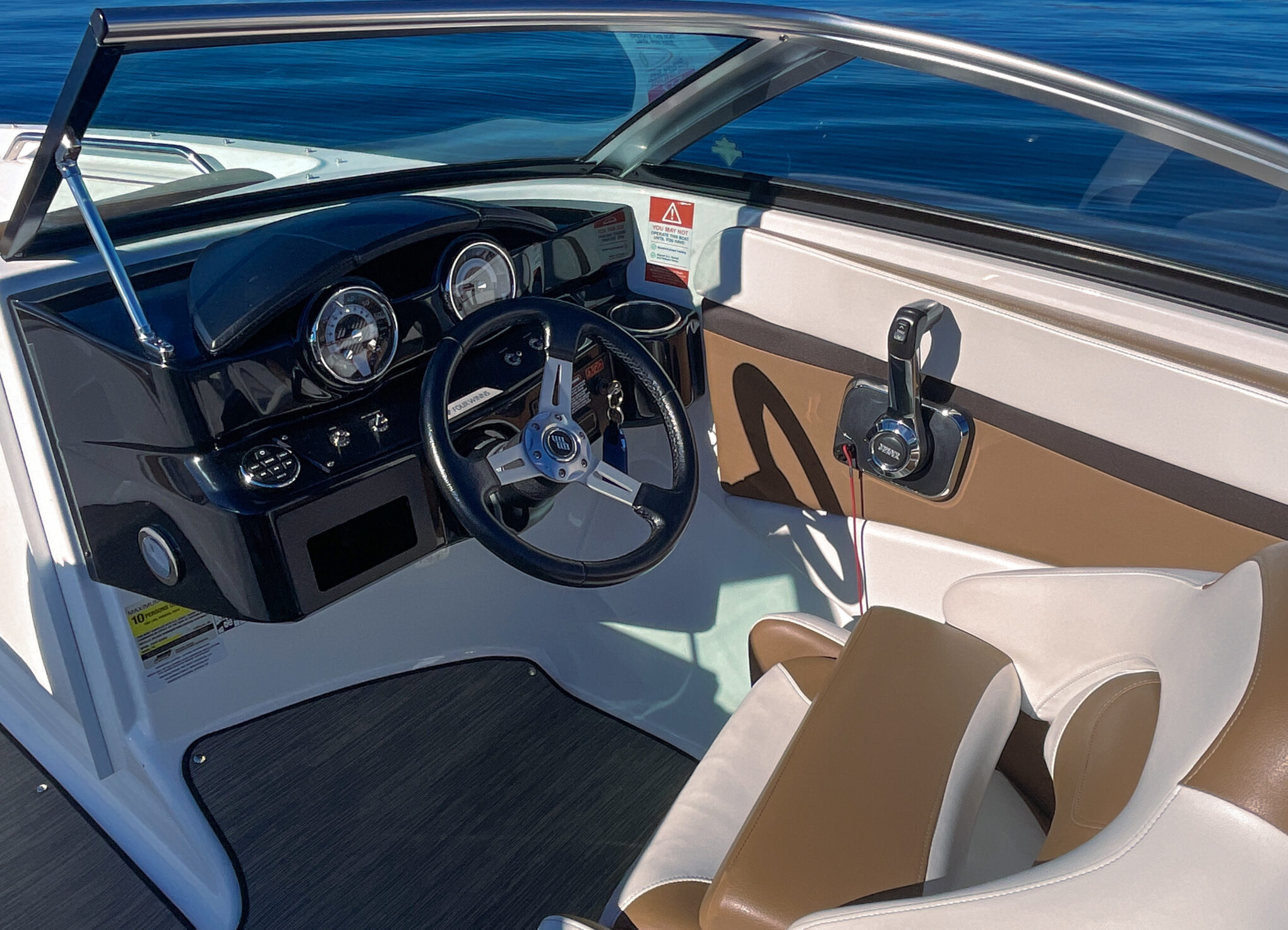 Want to take a simple and affordable trip around the lake? Our most popular option, the Basic boat, may be for you. These luxury deck boats have lounge-style seating and an extra wide bow, perfect for sightseeing Billionaire’s Row, the Thunderbird Lodge, or watching friends and family ride the waves on a tube. If you’re looking to drive the boat yourself, this helm is your best option!